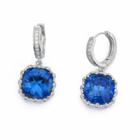 Orecchini a creola in brass rodiato/dorato con zirconi clear e pendente in cristallo carrè sapphire/magenta con frame increspato.