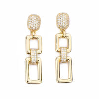 Questi orecchini con top a link a barretta in pavé di zirconi clear presentano elementi rettangolari in brass: perfetti per un look moderno e luminoso.