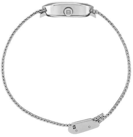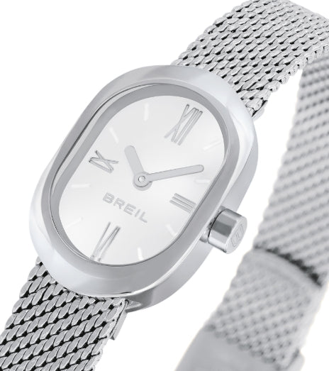 L'orologio da donna solo tempo Evanesse unisce eleganza e raffinatezza in ogni dettaglio. Il quadrante bianco, impreziosito da indici applicati con numeri romani, si abbina armoniosamente alla cassa in acciaio con finish lucido dalla forma ovale. Il bracciale in maglia mesh, in acciaio, è caratterizzato da un sofisticato effetto diamantato, che aggiunge un tocco di luce e modernità.