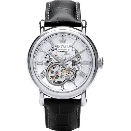 OROLOGIO ROYAL LONDON Royal London è un bellissimo orologio da uomo.Il materiale della cassa è in acciaio inossidabile mentre il colore del quadrante è scheletrato. Per quanto riguarda l'impermeabilità, l'orologio ha una resistenza fino a 50 metri. Significa che può essere immerso in acqua per periodi, quindi può essere utilizzato per nuotare e pescare.