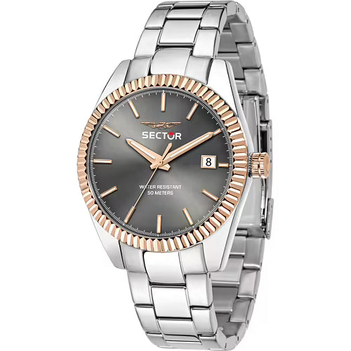 Orologio SECTOR 240 - R3253240009 - Sector experience: No Limits, Genere : Uomo, Dimensione cassa: 41.00, Materiale e finitura cassa: Acciaio, Pvd oro rosa, Misura cassa: 48x41mm, Spessore cassa: 12,3, Finitura cassa: pvd oro rosa, Vetro: Vetro minerale, Colore: Oro rosa, Silver, Materiale cinturino: Acciaio, metallo, Colore cinturino: Argento, Chiusura: Safety lock, Fibbia: Diver buckle w/safety lock, Movimento: Quarzo, Water resistant: 5 atm, Garanzia: Ufficiale 3 anni Sector, Sostituzione batteria: Sì, Confezione: Originale Sector