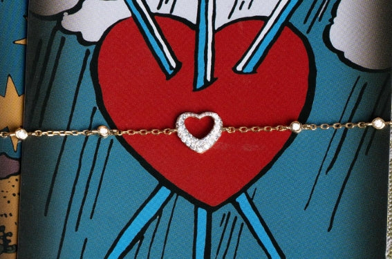 Bracciale inargento 925 d'orato placcato in oro 18kt con zirconi a forma cuore collezione MISSORI