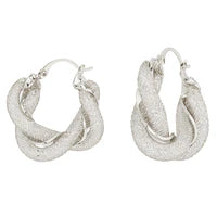 Questi orecchini a creola presentano due fasce ritorte in maglia mesh di brass, impreziosite da cristalli clear interni: per un look elegante e contemporaneo. Orecchini a creola con 2 fasce ritorte di maglia mesh in brass dorato/rodiato e cristalli clear interni.